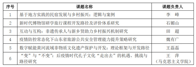 学校6项课题获2022年度山东省文化和旅游研究课题立项